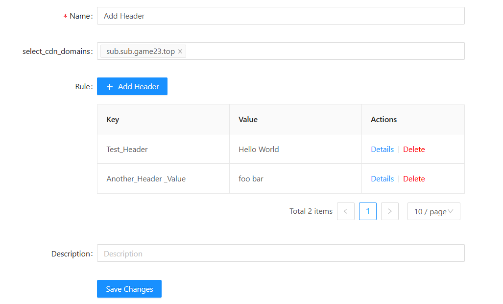 The Proxy Header feature allows you to define custom HTTP headers that the CDN edge node will include in origin requests. These headers are added only when the CDN communicates with your origin server, not to the client responses.