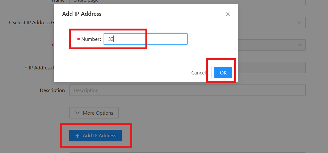 More Options > Add IP Addressand select the number of IP address to be added under the CIDR block.Note