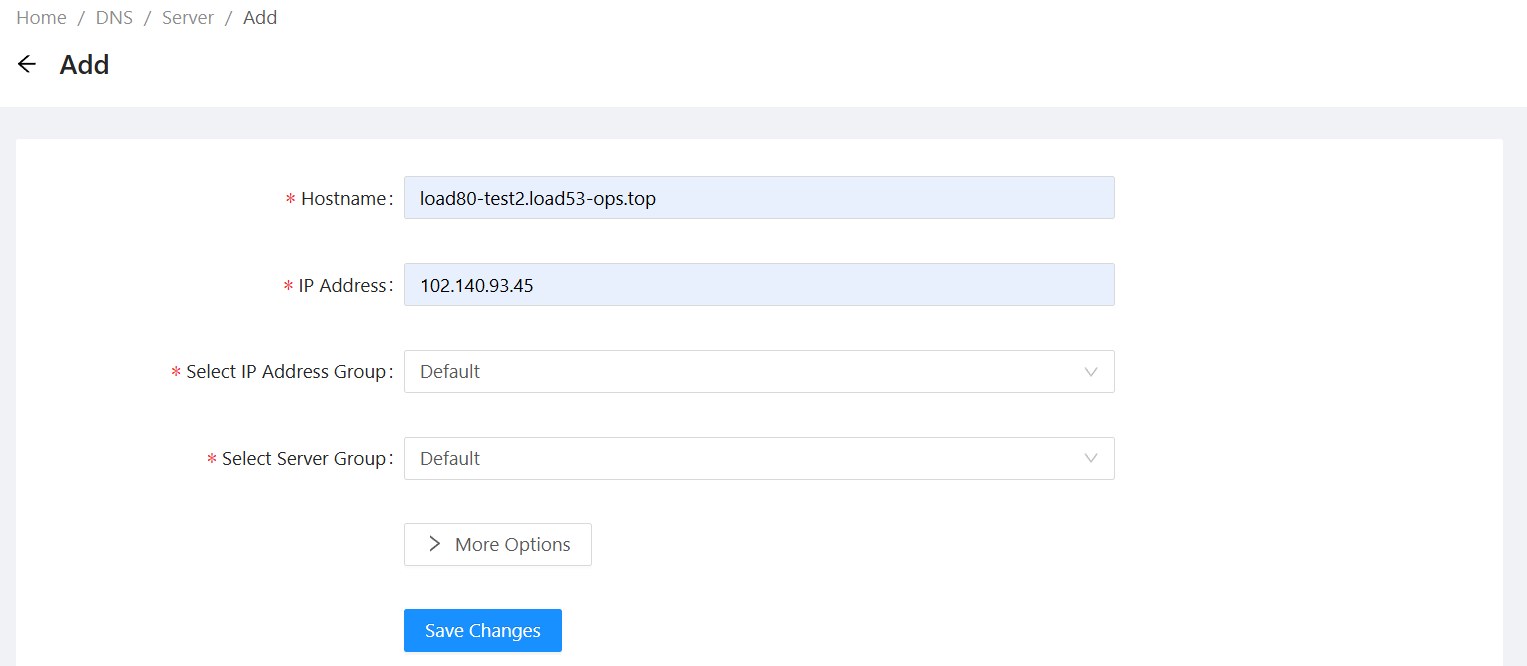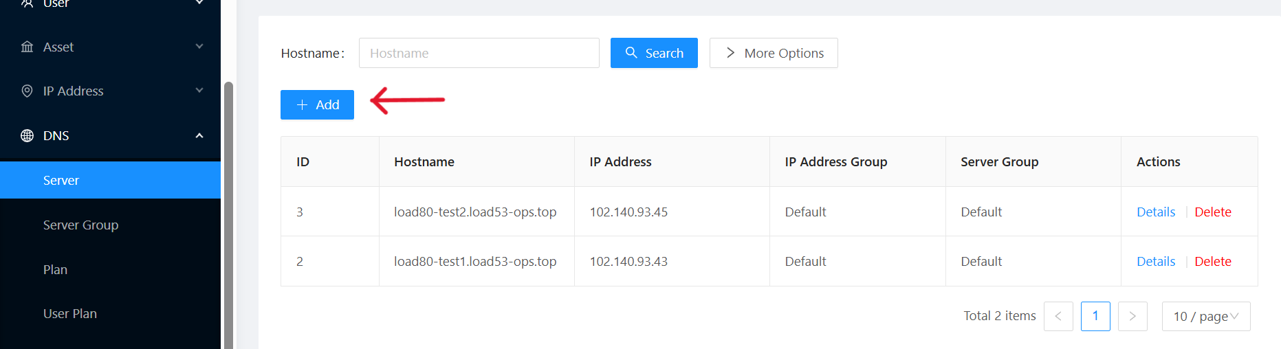 DNS > Serversection on the side bar. , selectAddbutton to define a new group