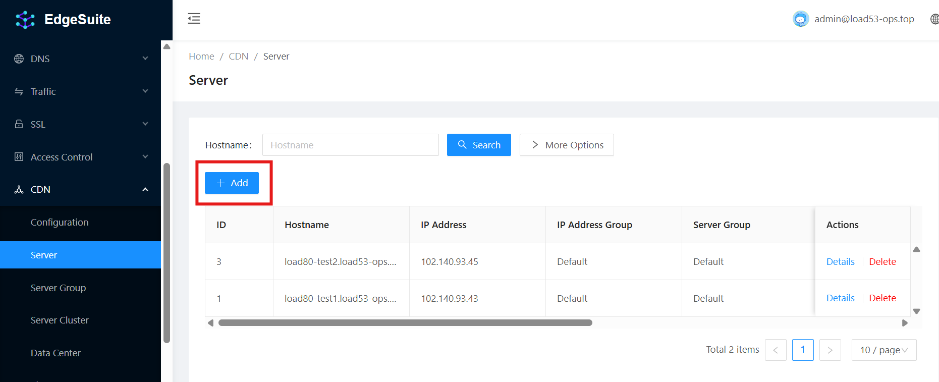 CDN > Server ClusterandCDN > Server GroupforServer ClusterandServer GroupsettingsNote