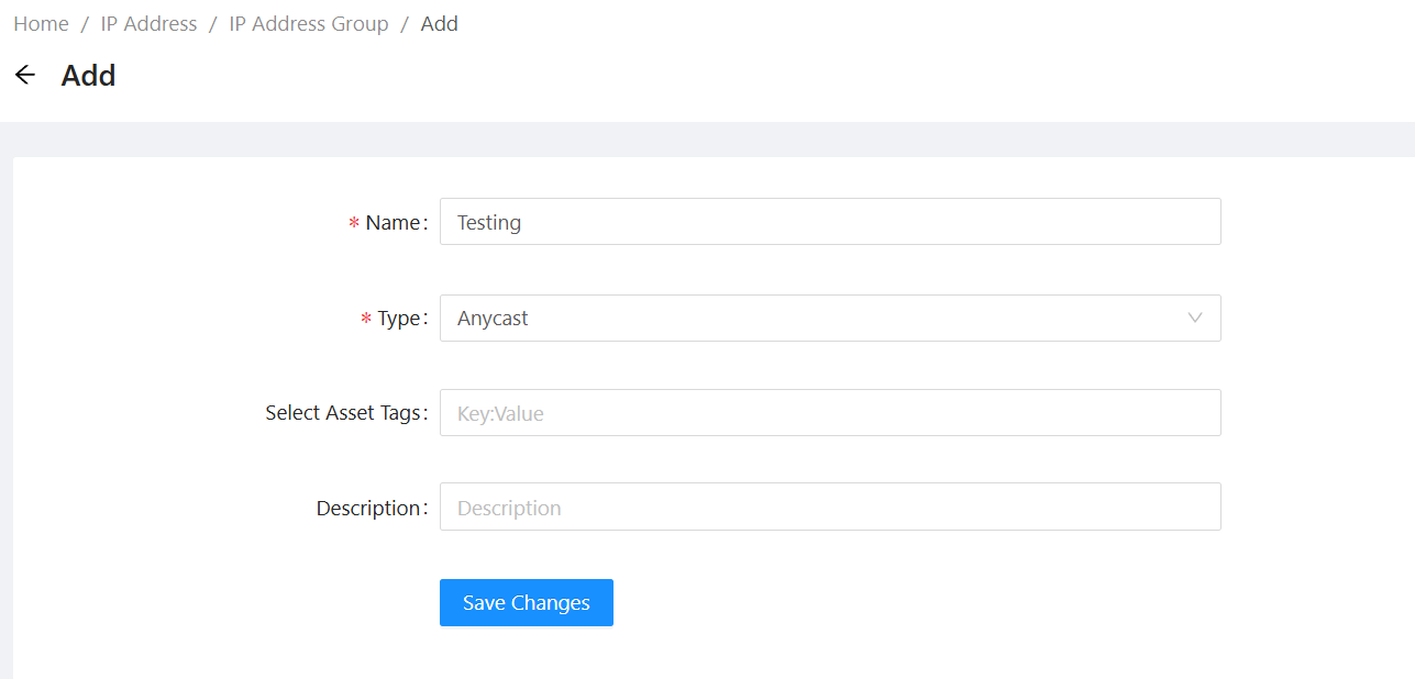 IP Adress > IP Adress Groupsection, and add a properIP Address Groupwith type Static or Anycast depending the setting on the coresponding load proxy node.Abstract