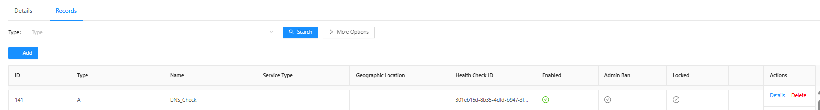 Once Configured, you Record tab would look similiar as below with HealthCheck ID column