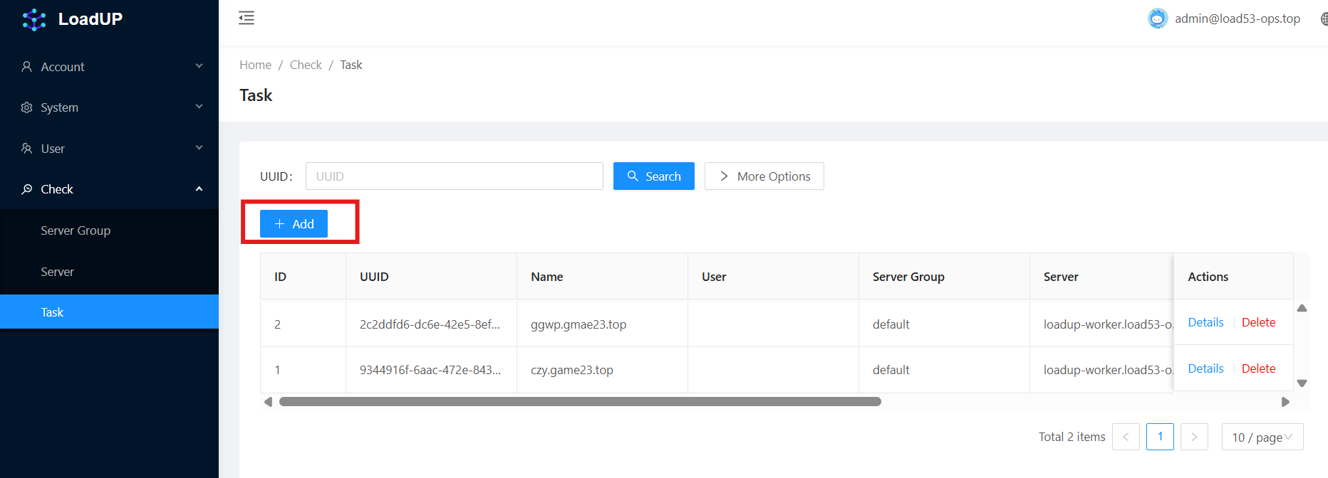 Define a new task to monitor target IP. Select the LoadUP-worker node that is responsible to execute the monitoring task.