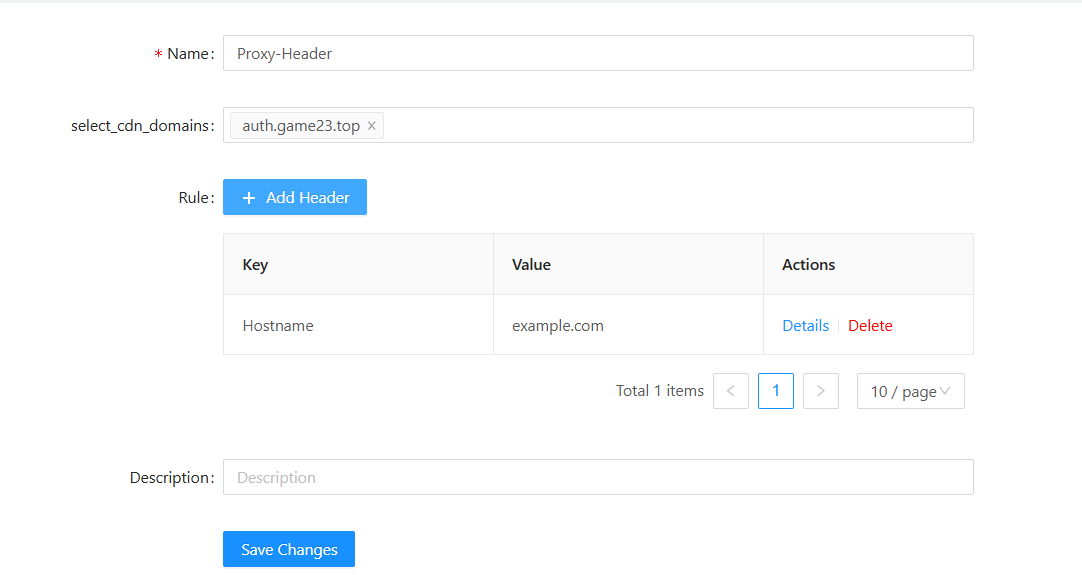 | 选择CDN域名 | 该规则适用的CDN域名列表 |