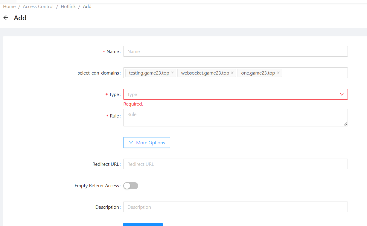 | 空来路访问 | 是否允许无Referer请求头的访问。默认为禁用(拦截) |