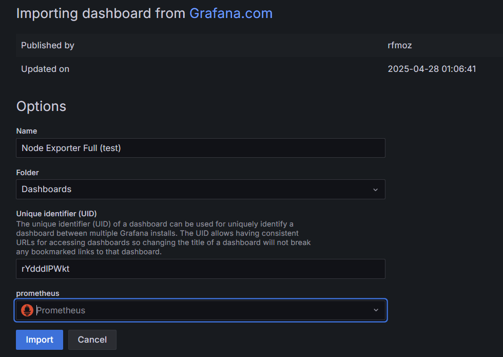 1860导入node exporter-full实例。更多信息请参考 Grafana Dashboard