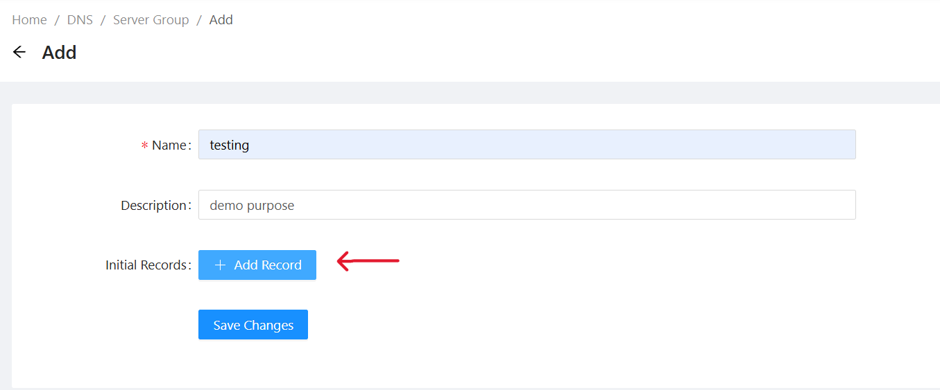 - 若计划在同一DNS组中添加多个DNS服务器,请确保该服务器组的DNS记录初始化中已包含指向每个DNS服务器IP地址的NS记录