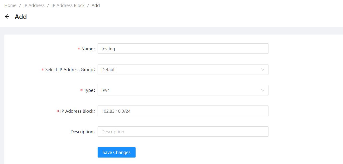 IP地址 > IP地址块部分. 将IP地址块映射至目标IP地址组, 并定义CIDR IP地址块 -