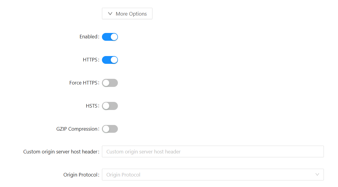 自定义回源服务器主机头。配置项 说明 启用状态 控制域名是否生效 HTTPS 启用客户端与CDN边缘的安全通信 强制HTTPS 自动将HTTP请求重定向到HTTPS HSTS 强制客户端后续访问使用HTTPS GZIP压缩 启用响应压缩减少传输量 自定义回源服务器主机头 指定转发到源站的自定义HTTP "Host" Header(虚拟主机场景必需) 源站协议 选择CDN边缘服务器访问回源时使用的协议