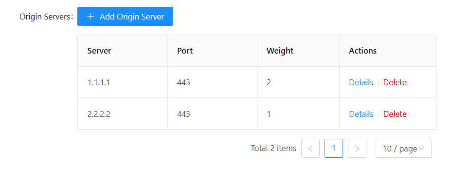 CDN 服务器组定义了一组 EdgeHit 服务器,负责存储用于从源站缓存内容并为用户域名提供服务的 NGINX 配置块