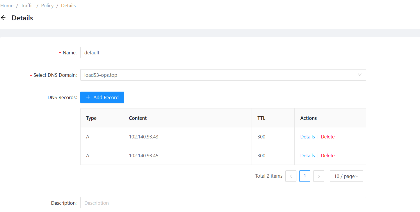 流量策略定义了将流量指向对应服务器组所需的 A 记录