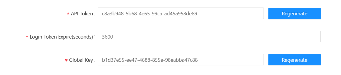 系统设置中的 API Token 和 Global Key 不是 分配给用户的 API Token 或 JWT Token。通常这些值不会被重新生成或用于自动化任务,应妥善保管。