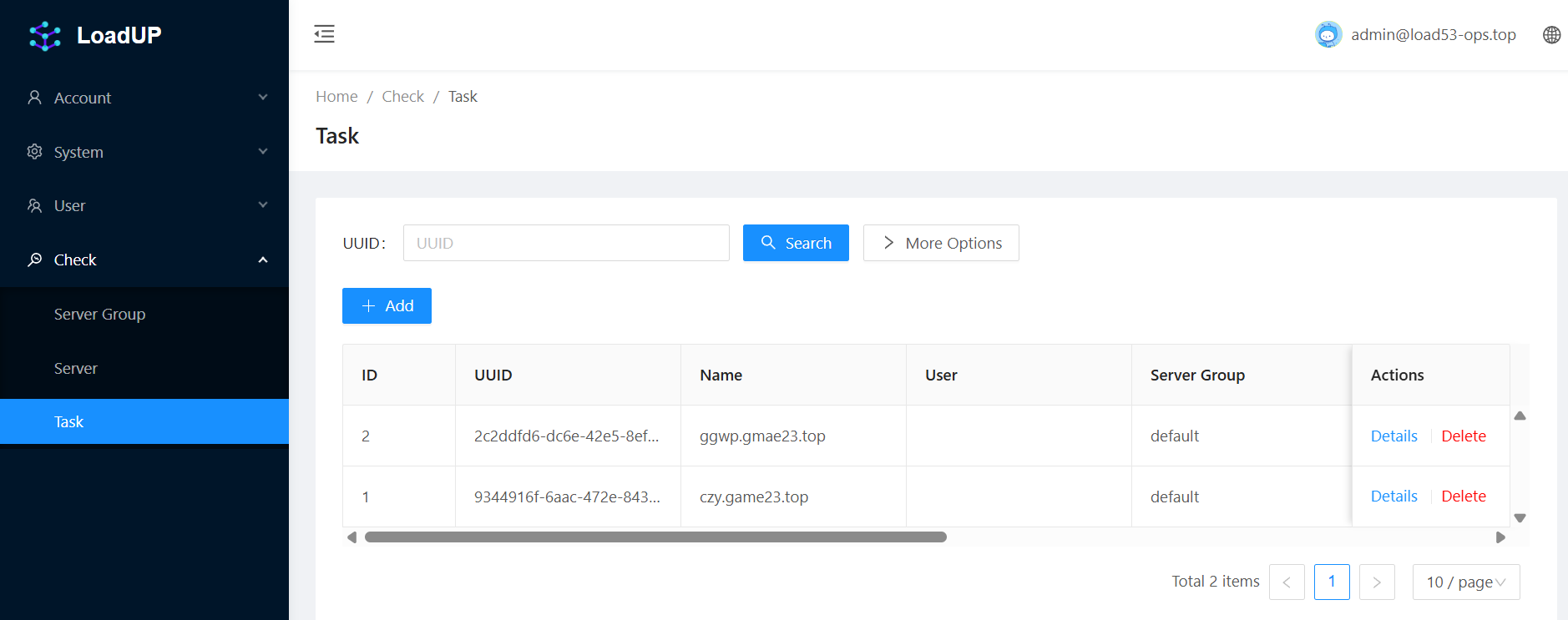 LoadUP 提供网页控制台作为管理平面,用于声明监控目标和配置工作节点。系统会为每个监控目标自动分配唯一 UUID。
